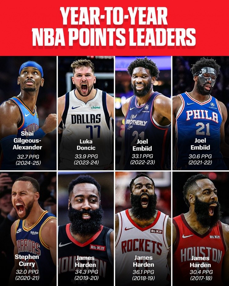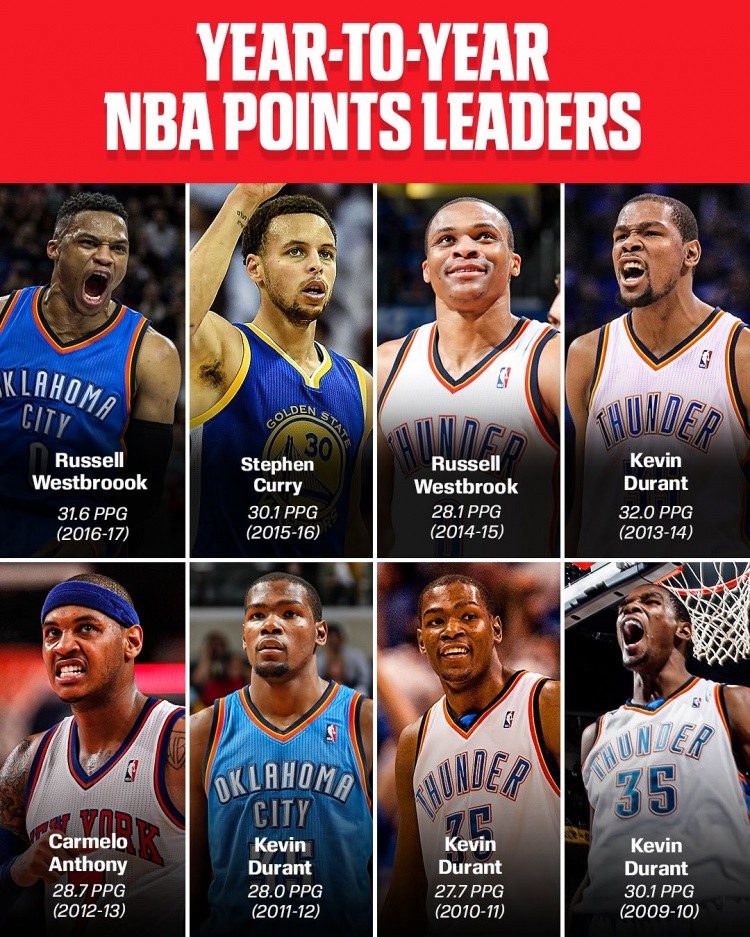 10月22日讯 NBA ON ESPN统计,列出了NBA近16个赛季的NBA得分王,这16个赛季的得分王由八人包办。